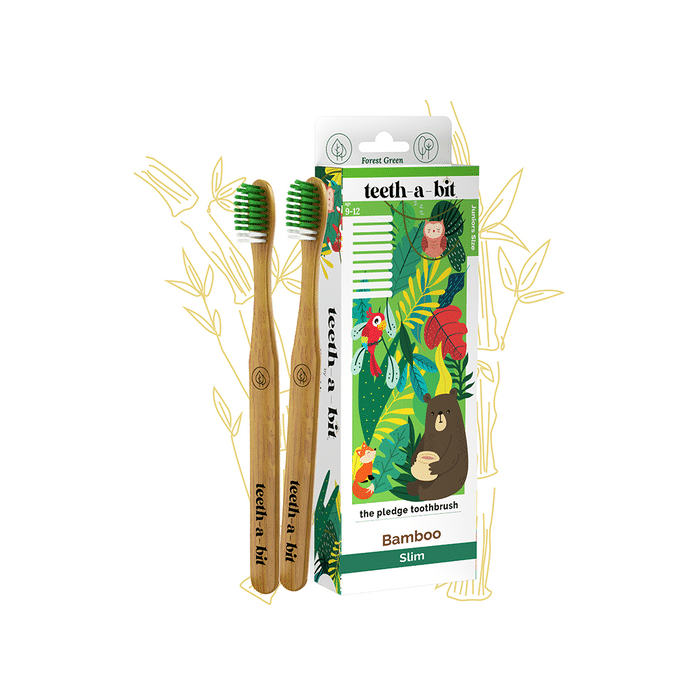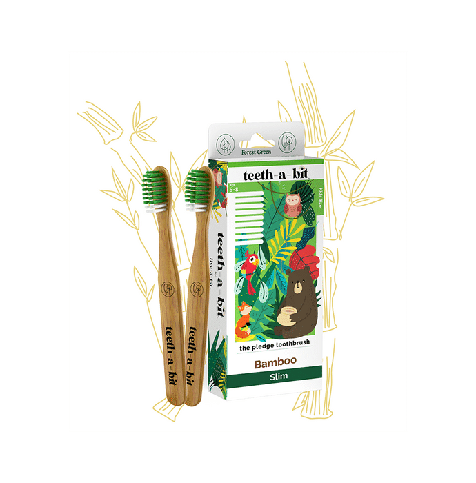 Teeth-A-Bit The Pledge Bamboo Toothbrush (5-8 Yrs) Slim Forest Green