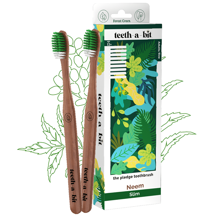 Teeth-A-Bit The Pledge Neem Adults Toothbrush Slim Forest Green