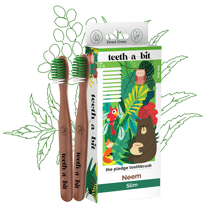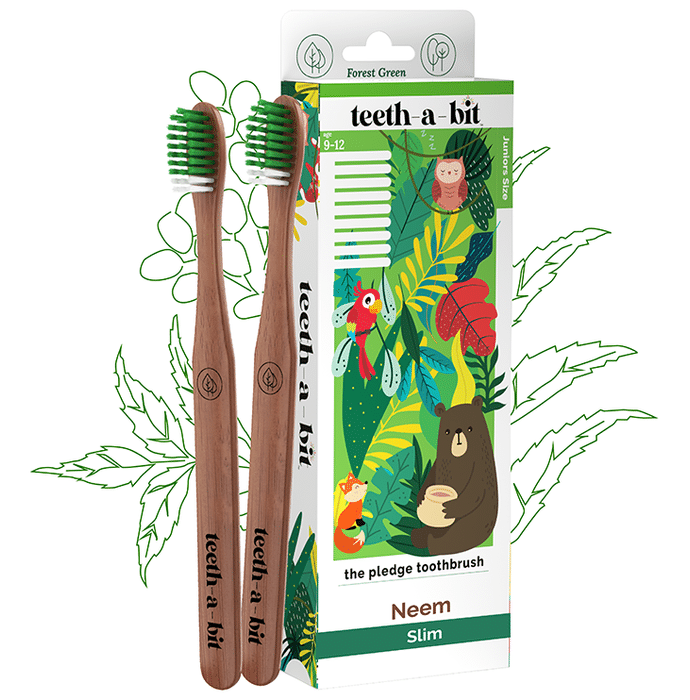 Teeth-A-Bit The Pledge Neem Toothbrush (5-8 Yrs) Slim Forest Green