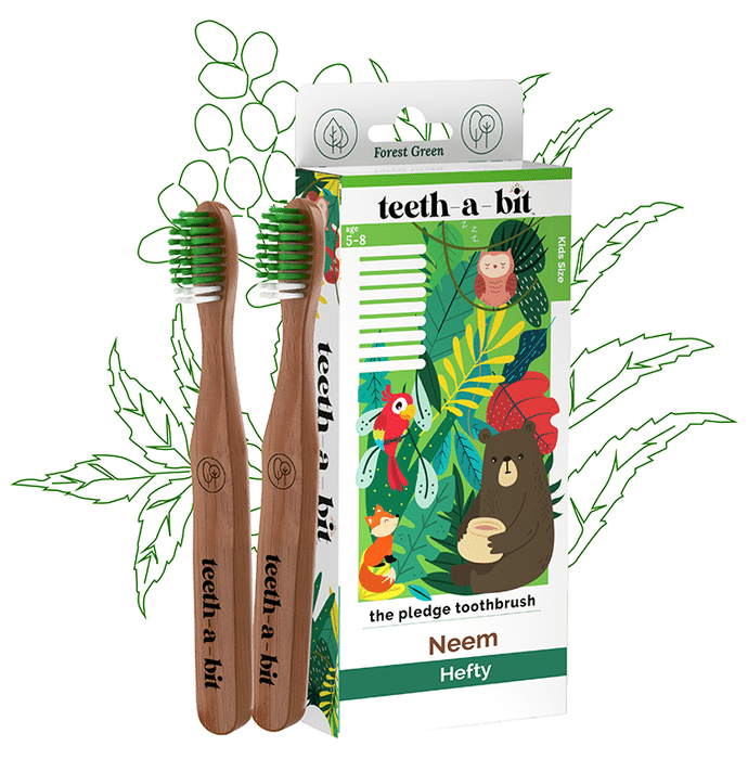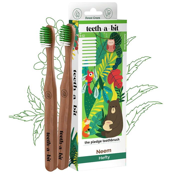 Teeth-A-Bit The Pledge Neem Toothbrush (5-8 Yrs) Hefty Forest Green