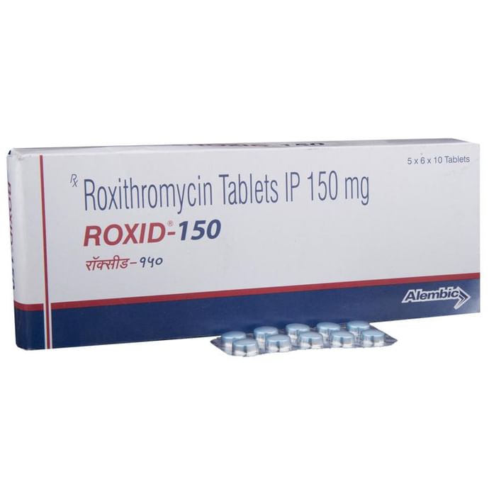 Roxid 150 Tablet is an antibiotic used to treat various types of bacterial infections. It is effective in resolving most infections of the respiratory tract, ear, nose, throat, lungs, and skin. It stops the growth of infection-causing bacteria and thus resolves the symptoms. Roxid 150 Tablet should be taken by mouth on an empty stomach. It should be used regularly at evenly spaced time intervals as prescribed by your doctor. Do not skip any doses and finish the full course of treatment even if you feel better. Stopping the medicine too early may lead to the infection returning or worsening. Commonly seen side effects seen with this medicine include nausea, vomiting, pain in the abdomen, and diarrhea. These are usually temporary and subside with the completion of treatment. Consult your doctor if these side effects do not resolve or persist for a longer duration. Inform your doctor if you have any previous history of allergy or heart problems before taking this medicine. Pregnant or breastfeeding women should consult their doctor before using this medicine.