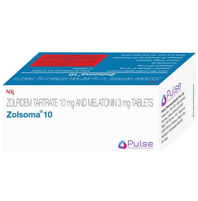 In Insomnia Zolsoma 10 Tablet helps treat insomnia (difficulty falling or staying asleep) in people who have problems related to their sleeping habits. Insomnia may cause you to wake up earlier than usual and you may find it difficult to go back to sleep. It works by slowing down the abnormal activity of nerves in the brain to allow sleep. It also improves the sleep-wake cycle and restores it to normal. This helps you relax, feel calm and more energetic. It also helps you concentrate better and improves your quality of life.