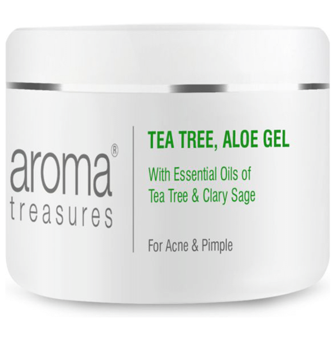 Aroma Treasures Tea Tree Aloe Gel has therapeutic properties .The oils help to clear acne & pimples, making the skin clean, smooth and soft. It has anti-viral & anti-fungal properties that reduces the production of sebum and decreases bacteria. | Key Ingredients: Tea Tree Clary Sage Aloe Vera | Key Benefits: It is useful in reducing acne and pimples It has therapeutic properties It is enriched with oils of tea tree, clary sage The combined therapeutic properties of these oils will help to clear acne & pimple, making the skin smooth & soft | Directions for use: As directed by the physician. | Safety Information: Read the label carefully before use Store in a cool and dry place away from direct sunlight Keep away from children Do not exceed the recommended dosage Take under medical supervision only