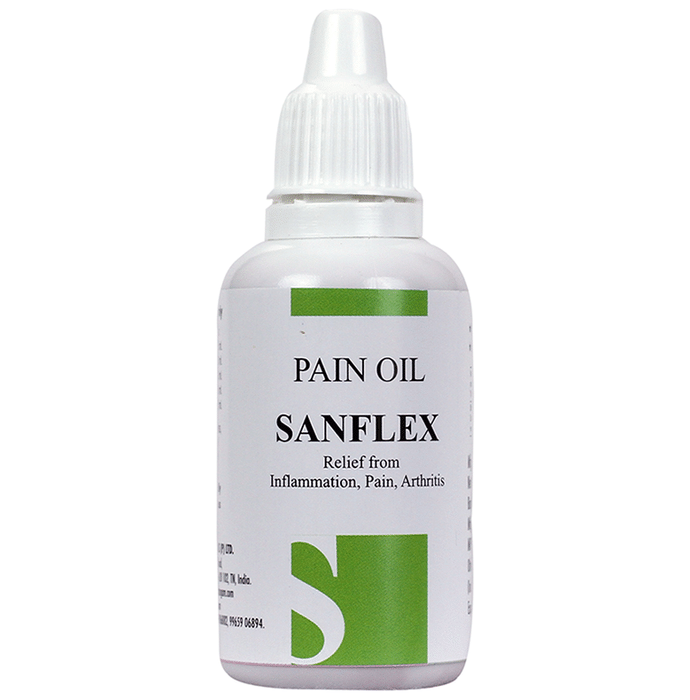 Ashtanga Sanflex Pain Oil Ashtanga Sanflex Pain Oil helps to relax the swollen and distended muscles and reduces the stiffness that increases with the age. It is useful to relieve any Musculoskeletal pain caused due to jerking movements, car accidents, falls, fractures, sprains, dislocations, and direct blows to the muscle.