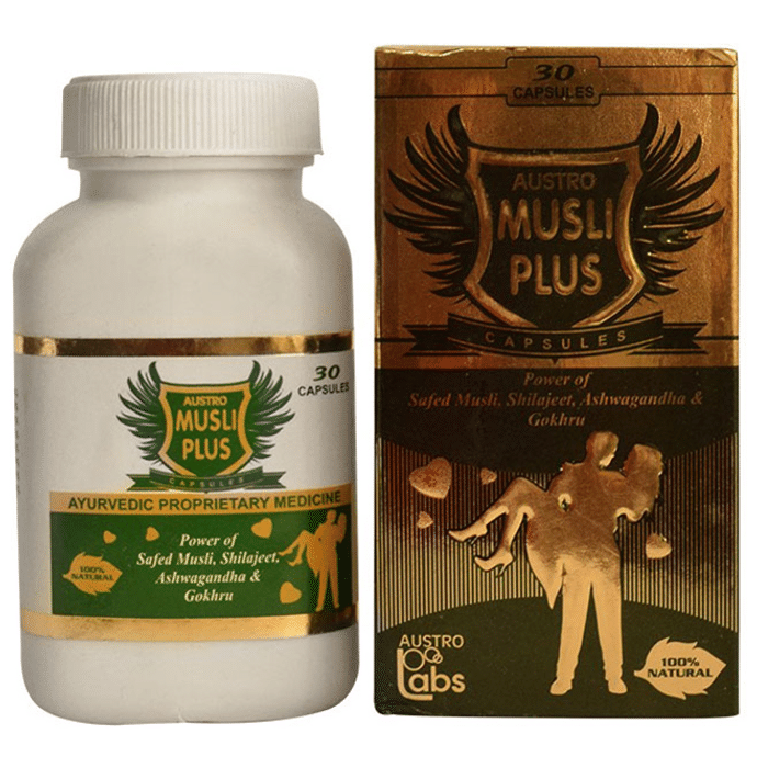 Austro Musli Plus Capsule Austro Musli Plus Capsule is natural, which may help increase libido. It is beneficial in managing weakness and can help improve energy levels. It may also enhance vigour and vitality and helps improve stamina and performance.