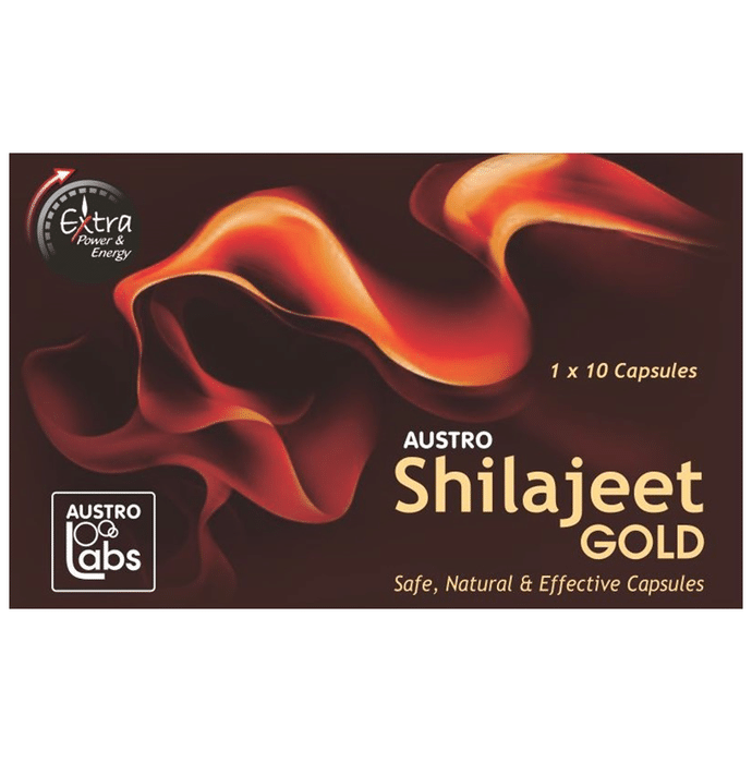 Austro Shilajeet Gold Capsule Austro Shilajeet Gold Capsule contains an ayurvedic herb Shilajit which is known for its aphrodisiac properties. Enriched with fulvic acid and minerals such as copper, silver, zinc and iron, it helps in boosting strength and stamina. It can also help improve vigour and vitality.