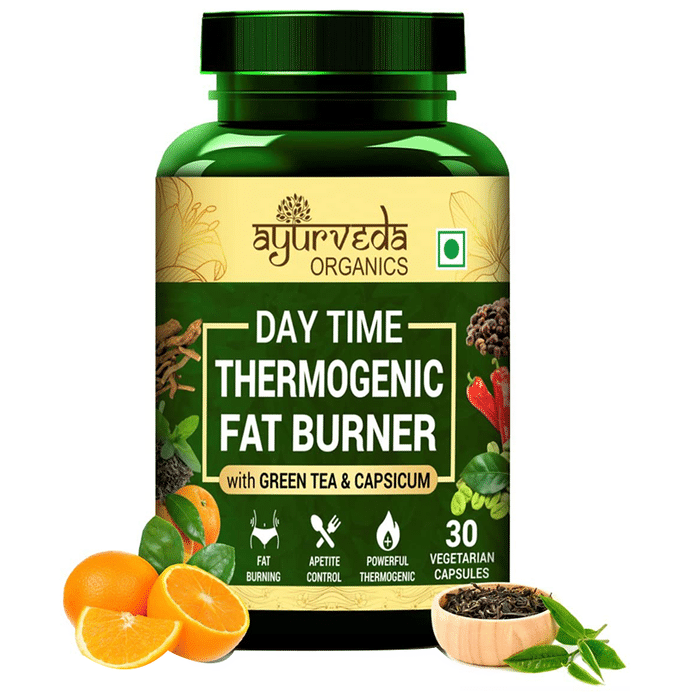 Ayurveda Organics Day Time Thermogenic Fat Burner Vegetarian Capsule Ayurveda Organics Day Time Thermogenic Fat Burner Vegetarian Capsule is formulated for individuals seeking safer weight loss methods. Formulated with green tea, CLA, and green coffee, these capsules may help suppress appetite and boost metabolism.