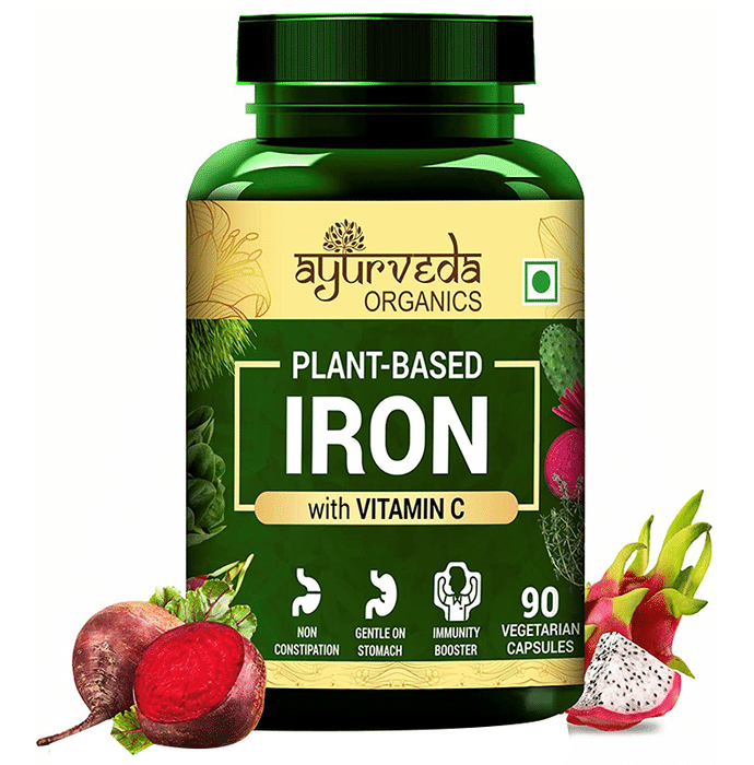 Ayurveda Organics Plant-Based Iron with Vitamin C Vegetarian Capsule Ayurveda Organics Plant-Based Iron with Vitamin C Vegetarian Capsule is a plant-based, organically sourced iron supplement primarily useful in managing low iron levels in the body. It can help enhance iron absorption in the body, which is needed for the healthy production of haemoglobin. Low levels of iron can lead to ailments such as fatigue, tiredness, exhaustion, weakness and cold.