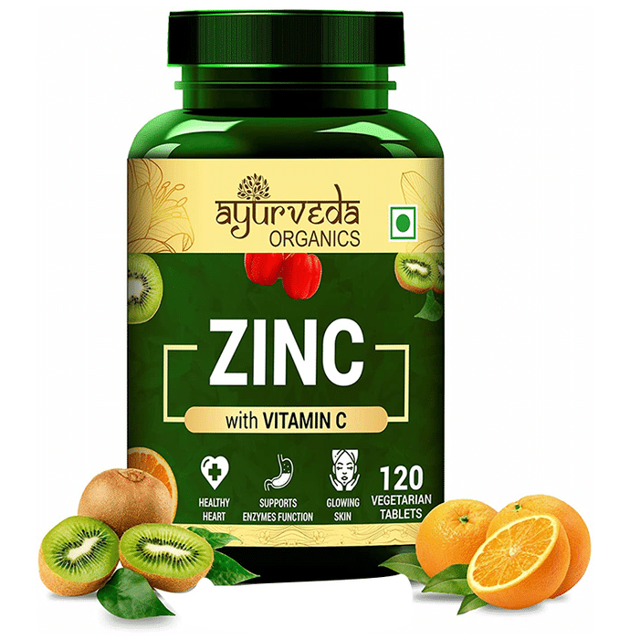 Ayurveda Organics Zinc with Vitamin C Vegetarian Tablet Ayurveda Organics Zinc with Vitamin C Vegetarian Tablet is a dietary supplement that can help produce melanin, an essential element to protect the eye's retina. It is also rich in antioxidants and can help enhance immunity. It can also help increase stamina and overall energy levels in the body.