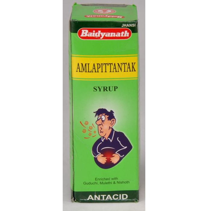 Amlapittantak Syrup is a combination of Guduchi, Neem, Chirayata, Bhringraj, Mulethi, Vasaka, Pittapapra, Parwal, Nishoth, Sajjikshar, Muktashukti bhasma. Amlapittantak Syrup is useful in hyperacidity, gastritis, dyspepsia, sour belching, heartburn, nausea, vomiting. Hyperacidity is also called acid dyspepsia, which is one of the most common problem. Hyperacidity is a medical condition in which the stomach secretes a lot of acids. It can be caused due to various medications, stressed lifestyle and spicy foods. Hyperacidity has various symptoms, which can include sudden stomach pain, vomiting, loss of appetite, flatulence and heartburn. Sometimes, the problem aggravates and lead to other complications such as chronic indigestion and gastric ulcers. Directions of use:- Children (3 to 12 years) 1Teaspoonful (5 ml) thrice a day. Adults 2 Teaspoonful (10 ml), twice a day. Use under medical supervision.