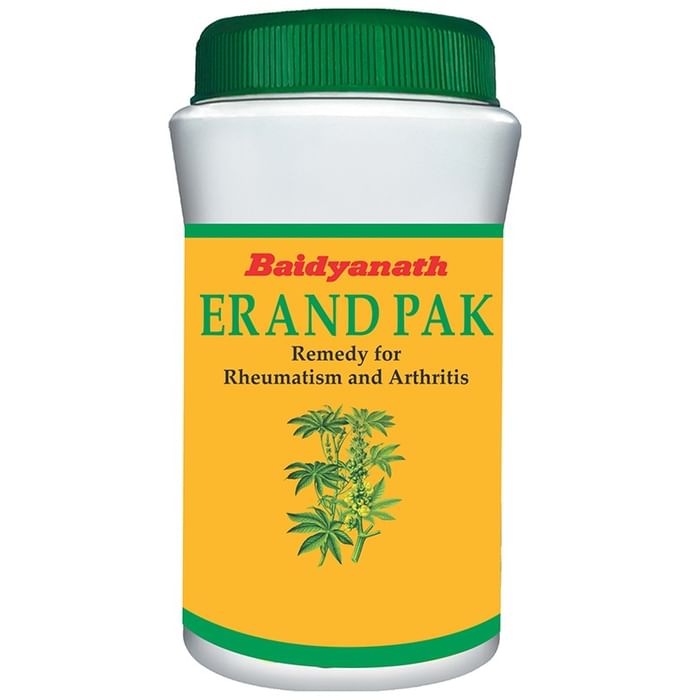 Baidyanath Erand Pak Baidyanath Erand Pak is an Ayurvedic medicine developed using the Vedic texts. A skilful and precise mixture of various shrubs and herbs, it has been effectively curing various ailments of the human body for over centuries now. Baidyanath Erand Pak’s composition is known for its extensive use in acute pain and conditions that is known to be easily alleviated by regular use of this mixture. Conditions such as abdominal pain, inflammation, oedema, orthopaedic problems and lower back pain are some of the ones that it specifically targets.