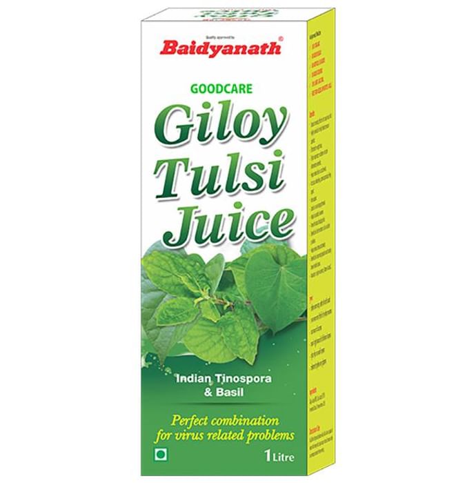 Baidyanath Giloy Tulsi Juice Boosts Immunity for OmniProtection Baidyanath Giloy Tulsi Juice Boosts Immunity for OmniProtection contains giloy and tulsi which is rich in antioxidants thus protects the body from free radical damage. It is useful in improving gut health and aiding the treatment of Type 2 Diabetes.