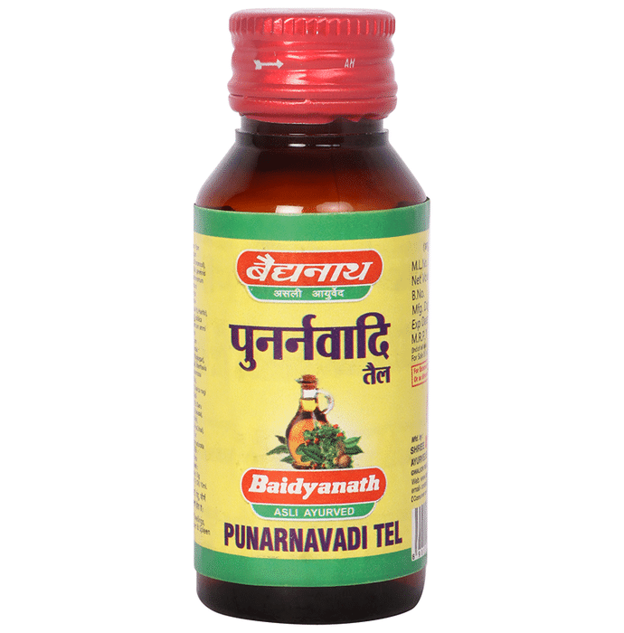 Baidyanath (Jhansi) Punarnavadi Tel Baidyanath (Jhansi) Punarnavadi Tel is a herbal medicine used in oedema treatment. It improves blood circulation, relieves inflammation and exerts protective effects on the heart, kidneys, and liver. It helps to balance the fluid accumulation in cells, tissues, or serous cavities. Therefore, it can be used in all types of diseases, which result in abnormal accumulation in the body. It acts as a pain reliever and anti-inflammatory without any known side effects.