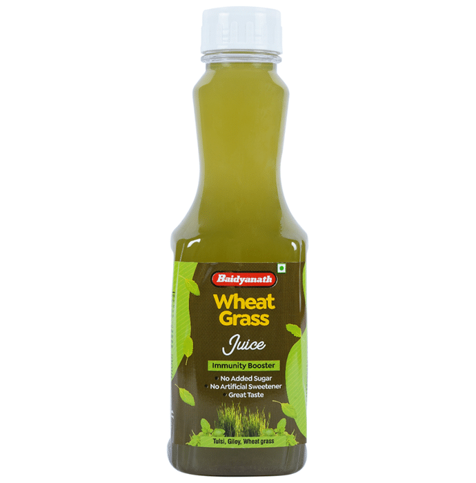 Baidyanath (Jhansi) Wheat Grass Ready to Drink Juice Baidyanath (Jhansi) Wheat Grass Ready to Drink Juice is a ready-to-drink JJuice that contains wheat grass, giloy and tulsi. This is a wholesome health drink with vital nutrients like vitamins A, B-complex, C and E. This nutritional blend is full of vitamins and minerals that can improve immunity. It can also help in maintaining acid-base balance in the gut.