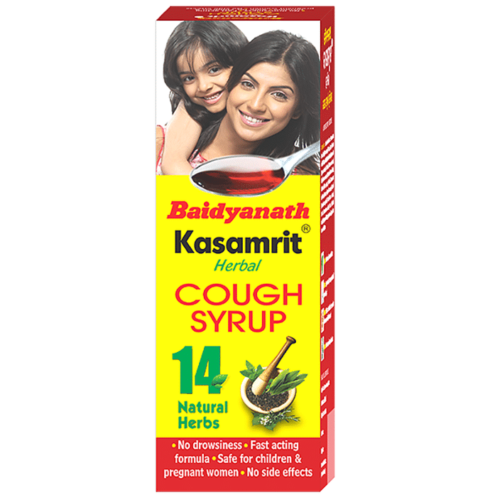 Baidyanath Kasamrit Herbal Syrup Baidyanath (Nagpur) Kasamrit Herbal Syrup is a non-drowsy tonic which acts as a herbal supplement for common cough, cold, runny nose, nasal congestion and sore throat. It is effective in treating chronic and acute Bronchitis as well as whooping and asthmatic cough. It aids treatment of respiratory tract infections, liquifies and expels viscid secretion in distressing and irritating dry cough. It also helps with smoker's cough and singer’s cough. It is safe for pregnant women and children.