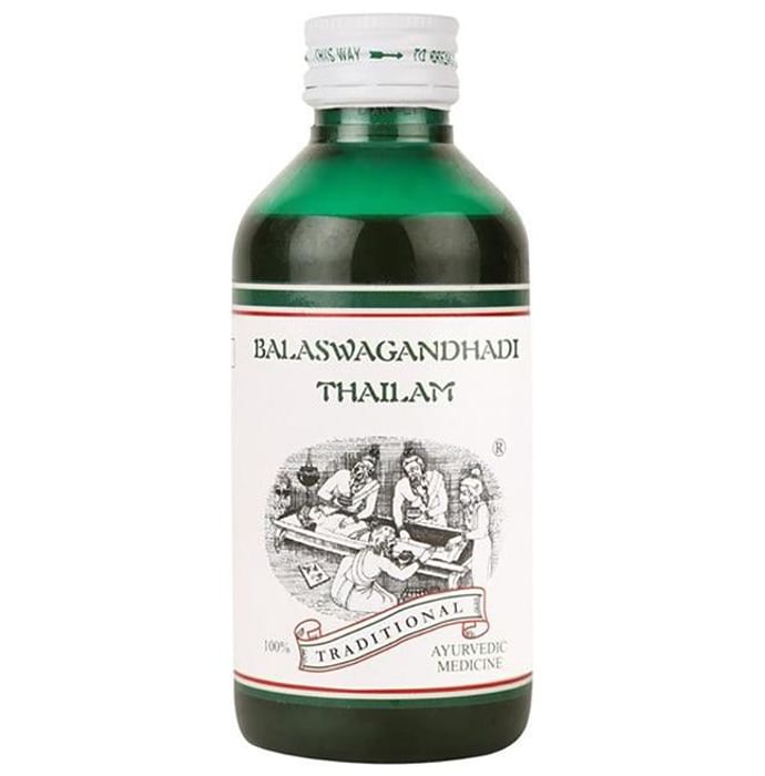 Balaswagandhi Thailam Balaswagandhadi Thailam is a medicated ayurvedic formulated oil. The oil is recommended to be used in the treatment of weakness of muscles, bones and joints. Balaswagandhadi Thailam is a perfect combination of several essential oils (each characterised with a feature). Amongst the several ingredients, a few of them are, Kushta, Rasna, Sariva. It has also been found to be beneficial in the treatment of conditions such as rheumatism, arthritis, neuralgia and paralysis. Additionally, it has been beneficial for strengthening of the bones and therefore used as tonic. The rejuvenating properties of Balaswagandhadi Thailam strengthen muscles and tone the nerves. Balaswagandhadi Thailam is recommended for nervous conditions, muscular dystrophy, emaciation and debilitation. This is an all-body oil. Use under medical supervision.