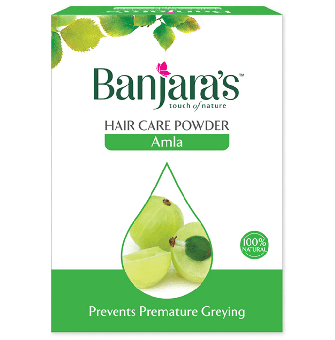 Banjara's Hair Care Powder Amla Banjara's Hair Care Powder is a natural hair cleanser that is useful in strengthening hair and promoting hair growth. It aids in improved hair health leaving them shiny and bouncy and preventing hair loss. It is also useful in preventing premature greying of hair.