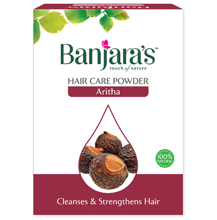 Banjara's Hair Care Powder Aritha Banjara's Hair Care Powder is a natural hair cleanser that is useful in strengthening hair and promoting hair growth. It aids in improved hair health leaving them shiny and bouncy and preventing hair loss. It is also useful in preventing premature greying of hair.