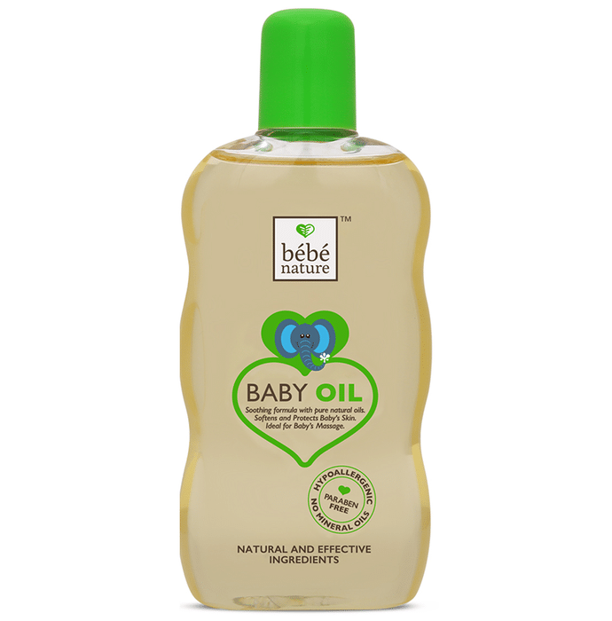 Bebe Nature Baby Oil is enriched with baby-loving ayurvedic herbs. It has the power of jojoba, olive and almond to provide nourishment and strength to the baby's skin without any harmful chemicals. | Key Ingredients: Almond | Key Benefits: It gives hydration and moisturisation to the skin This is formulated with the utmost care and love with natural ingredients to protect your baby This baby oil has a specially developed formulation for daily moisturising and nourishment of a baby's skin | Directions For Use: Use as per your need or as recommended by the doctor. | Safety Information: Store in a cool and dry place away from direct sunlight Keep out of reach of children Read the label carefully before use