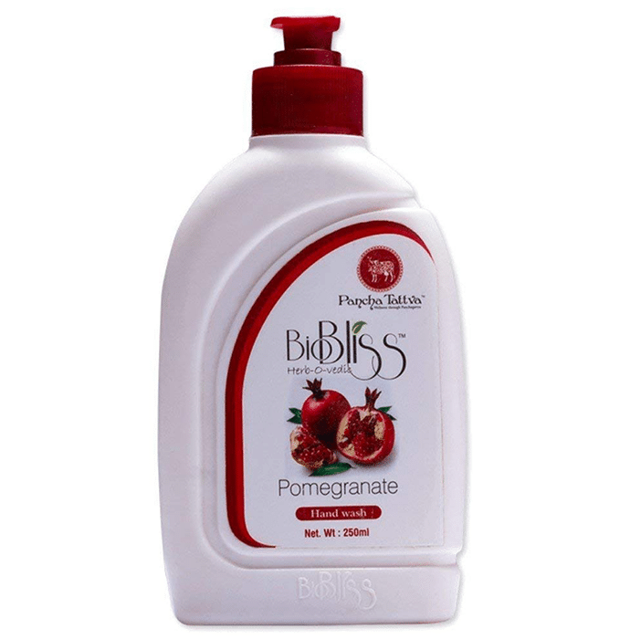 Bibliss Handwash Pomegranate Bibliss Handwash Pomegranate is made up of natural extract to give the best effect and glowing skin. It has a long-lasting fragrance which provides a soothing and re-energizing feeling for a long time.