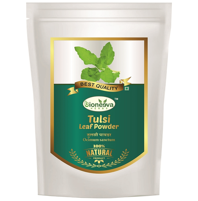 Bioneeva Herbs Tulsi Leaf Powder is used for several health issues. It is beneficial for the treatment of respiratory disorders, including chronic cough and asthma. It relieves congestion in the chest to promote breathing. Besides, Tulsi is beneficial in treating body fever. | Key Ingredients: Tulsi Leaf Powder (Ocimun Sanctum) | Key Benefits: Rich in antioxidants Relieves stress and promotes better sleep Relieves congestion in the chest to promote better breathing Boosts the immune system | Directions For Use: Use as indicated on the label or as directed by the physician. | Safety Instructions: Read the label carefully before use Store in a cool dry place away from direct sunlight Keep out of reach of the children