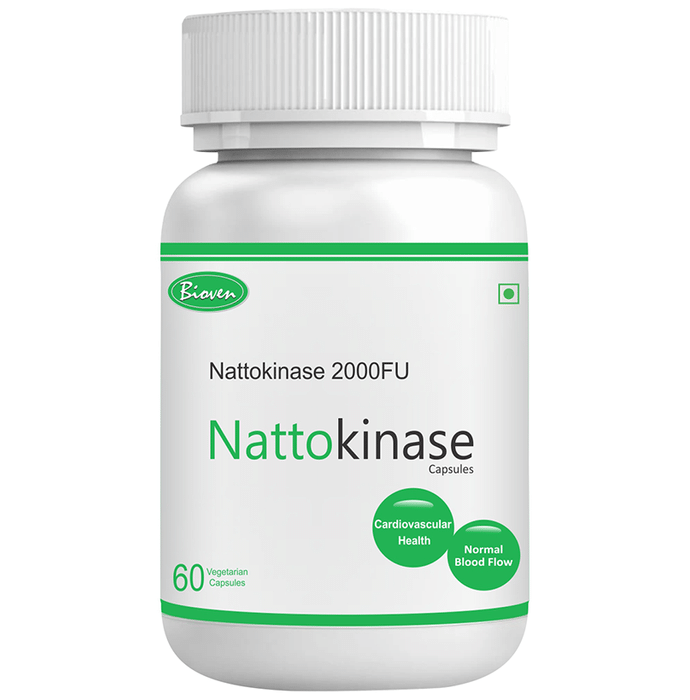 Bioven Nattokinase 2000FU Vegetarian Capsule Bioven Nattokinase 2000FU Vegetarian Capsule help dissolve blood clots and can also help in improving blood flow. It can also help lower blood pressure and reduce the stress on the heart and keep it healthy. Nattokinase can also help decrease the viscosity of the mucus and help you breathe better. It has been shown to support healthy blood flow by assisting the circulatory clearing system of the body.