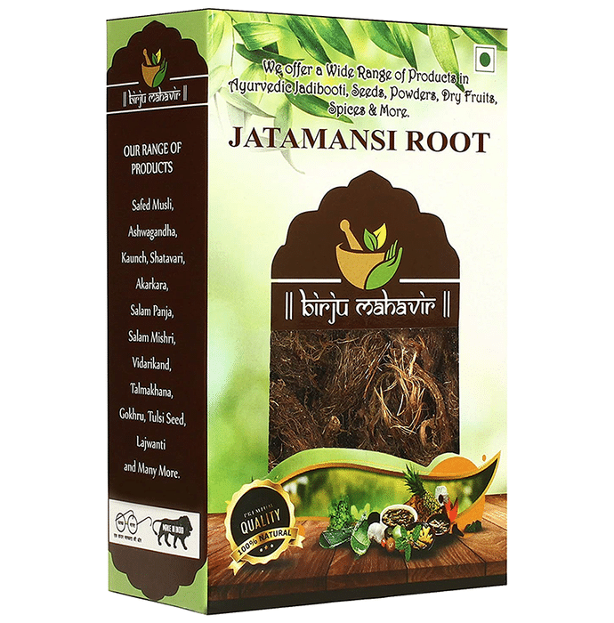 Birju Mahavir Jatamansi Root It is an ayurvedic product known to support brain functions and help improve memory. It has antioxidant properties that protect against oxidative cell damage. It can prevent wrinkles and help in faster wound healing. It may also help reduce anxiety. | Key Ingredients: Jatamansi | Key Benefits: It can help support brain functions and memory It may increase moisture in the skin and reduce the appearance of wrinkles It is rich in antioxidants that can protect against damage caused by oxidative stress It can help support insomnia and anxiety | Directions For Use: Use as directed by the physician | Safety Information: Read the label carefully before use Keep out of reach of children Store in a cool and dry place