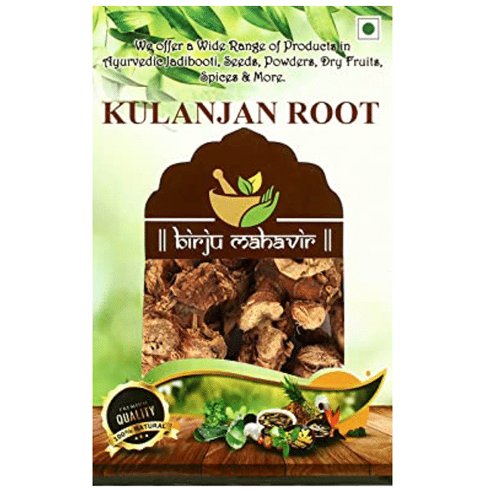 Birju Mahavir Kulanjan Root It is an ayurvedic product known to be beneficial in treating coughs. It can be used in the treatment of respiratory issues. It can help with digestion. It may provide relief from toothache and reduce bad breath. | Key Ingredients: Kulanjan root | Key Benefits: It can be used in the treatment of cough and congestion It helps to promote digestion and treat digestion-related problems It can reduce bloating and abdominal gas It may aid in boosting immunity and protect the body against diseases | Directions For Use: Use as directed by the physician | Safety Information: Read the label carefully before use Keep out of reach of children Store in a cool and dry place