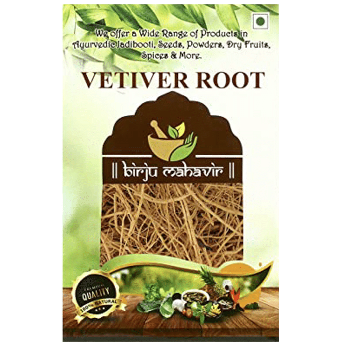 Birju Mahavir Vetiver Root This is an ayurvedic product known to contain dietary fibre that can support bowel movements and ease constipation. It may help reduce cough and be beneficial in the treatment of asthma. It can also help in maintaining skin health and reduce inflammations. | Key Ingredients: Khus root | Key Benefits: It can aid improving bowel movements and constipation It can be used in the treatment of cough and flu It may improve skin health and reduce skin inflammations | Directions For Use: Use as directed by the physician | Safety Information: Read the label carefully before use Keep out of reach of children Store in a cool and dry place