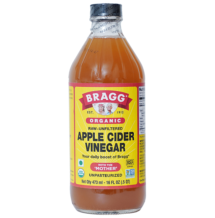 Bragg Organic Raw Unfiltered Apple Cider Vinegar is formulated with the finest and delectable organically grown apples. It possesses zesty organic goodness and has the 'mother' of vinegar. Apple cider vinegar is a very common home remedy. It has been used for ages for medicine and cooking purposes. Many users worldwode claim to have experienced a lot of health benefits from apple cider vinegar. The Bragg Organic Raw Unfiltered Apple Cider Vinegar has a multitude of health benefits, including antioxidant and antimicrobial effect. Apple cider vinegar helps to lower blood sugar levels, helps in weight loss and also improves the symptom of diabetes. | Key Ingredients Of Bragg Organic Raw Unfiltered Apple Cider Vinegar: Raw apple cider vinegar | Key Benefits Of Bragg Organic Raw Unfiltered Apple Cider Vinegar: Helps maintain a healthy weight range Delivers prebiotics to support a healthy gut Applied externally helps maintain healthy skin Supports a healthy immune system Helps maintain normal glucose levels Bragg’s adds delicious flavour to salads, veggies and most foods | Directions For Use: Use as directed by a healthcare professional. | Safety Information and Precautions: Read the label carefully before use Store in a cool and dry place away from direct sunlight Keep out of reach of the children Apple cider vinegar should not be consumed undiluted | About the Brand: Bragg aims to make it possible for every individual to lead a healthy life. They ensure that their ingredients are sourced from the land, instead of labs. This is what makes them different from other similar brands. The choice of ingredients and the right composition helps ensure that every product delivers a proven dose of wellness. | Quick Tips: Apple cider vinegar can help with yellow nails. Just soak your fingers in a bowl of vinegar mixed with water and rinse after 30 minutes. It helps treat blemishes or pimples. Just dab some vinegar on the affected area. Bragg Organic Raw Unfiltered Apple Cider Vinegar makes hair super soft and shiny Apple cider vinegar, with its antibacterial properties, helps disinfect the dirtiest of makeup brushes Soak your feet in apple cider to soften and exfoliate the skin Mix water and apple cider vinegar in equal parts and apply to your scalp to get rid of dandruff | FAQs: | Q. Is it good to drink apple cider vinegar every day? Although the consumption of apple cider vinegar is associated with numerous health benefits, taking large amounts daily can be dangerous for the body. Make sure to read the label or consult a healthcare professional before including apple cider vinegar in your daily routine. | Q. Who should not consume Bragg Organic Raw Unfiltered Apple Cider Vinegar? Apple cider vinegar is not recommended for people experiencing digestive issues, low potassium levels and diabetes. In such cases, we advise you to consult a medical professional in advance. | Q. How can apple cider vinegar be consumed without damaging the teeth? To minimize exposure to acetic acid, you can dilute the vinegar with water and consume it with a straw. Also, rinse your mouth after the consumption of apple cider vinegar. | Q. What are the side effects of consuming apple cider vinegar every day? As apple cider vinegar has high acidity, drinking more than the recommended amount of apple cider vinegar can damage teeth, hurt the throat and upset the stomach.