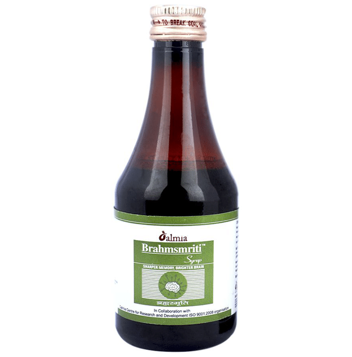 Brahmsmriti Syrup It is an ayurvedic syrup formulated with shankhpushpi, ashwagandha, jatamansi, guduchi, brahmi, and other herbs that promote brain health. These natural ingredients help increase your mental performance and cognitive functions. It helps improve your memory and relieve stress and anxiety. | Key Ingredients: Mandookaparni (Centella Asiatica) Shankhapushpi (Clitoriaternatea) Jyotishmati (Celastrus paniculatus) Ashwagandha (Withania Somnifera) Jatamansi (Nardostachys Jatamansi) Yashtimadhu (Glycyrrhiza Glabra) Guduchi (Tinospora Cordifolia) Brahmi | Key Benefits: It is a syrup formulated with ayurvedic herbs that promote brain health It helps to increase your mental performance and cognitive functions It helps improve your mood, boost brain power and increase the natural energy It helps to improve your focus, concentration, and mental agility Ashwagandha helps to reduce stress and anxiety levels in the body Brahmi helps to enhance cognitive skills and stimulates the mind to improve memory and concentration Shankhpushpi helps to calm the brain, relieve stress as well as anxiety, and improve memory | Directions For Use: For children of ages 5 to 10 years, take 5 ml twice a day after food or as directed by your physician For people above 11 years of age, take 7.5 ml twice a day after food or as directed by your physician | Safety Information: Read the product label carefully before use Store in a cool and dry place away from direct sunlight Keep out of reach of children Consult a doctor before taking any supplement Do not exceed the recommended dosage Pregnant or nursing mothers, children, and people with medical conditions must consult a physician before taking this supplement Do not use if the product appears to be tampered with or the seal is broken