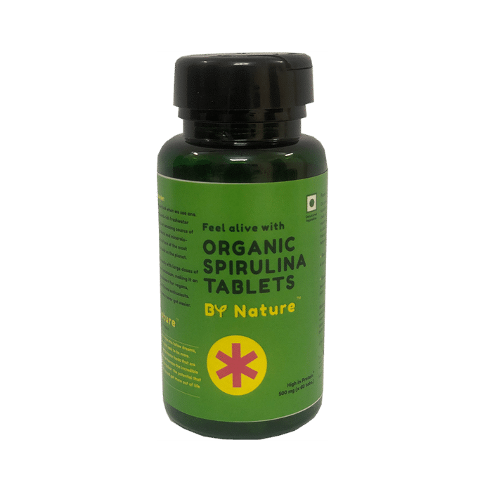 By Nature Organic Spirulina Tablets made from spirulina, blue-green algae that work as a complete health food, the By Nature Spirulina Powder contains 46 essential nutrients that are required by the human body for healthy functioning. The gluten-free green food contains protein and vitamin B12, both of which are nutrients that are usually found lacking in a vegetarian diet. | Key Ingredients: Spirulina | Key Benefits: High in protein and is a good source of potassium, calcium and iron The beta carotene content protects the cell from the damage The presence of GLA (Gamma Linolenic Acid) will help to control cholesterol problems and prevent heart disease It is a source of several important phytonutrients such as carotenoids | Directions For Use: Take 1 tablet a day or as directed by the physician. | Safety Information: Read the label carefully before use Keep out of reach of the children Store in a cool dry place