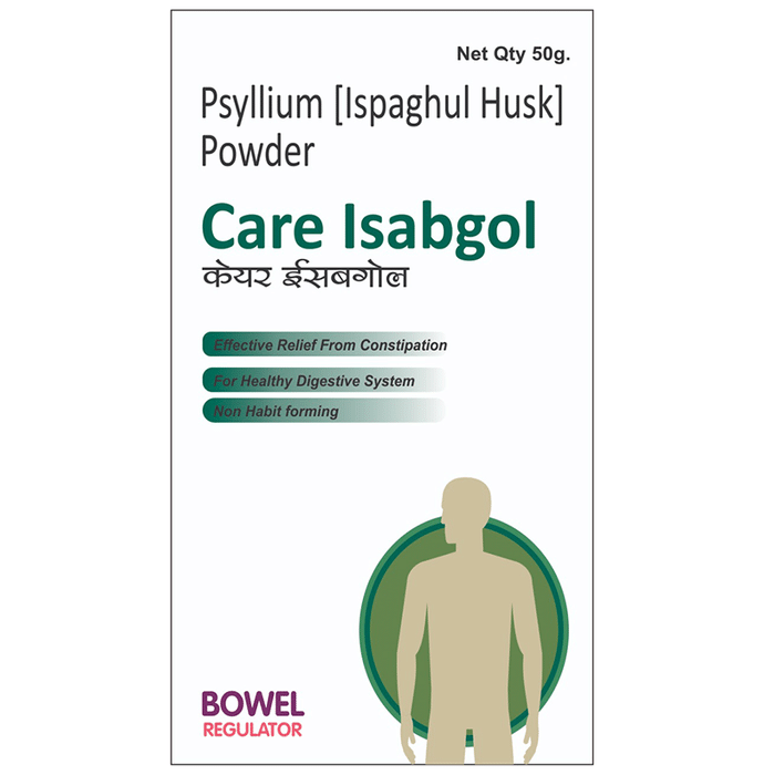 Care Isabgol Powder (50gm Each) Care Isabgol Powder Isabgol is also known as psyllium husk is a dietary fibre that helps to increase stool and promote laxation. It is one of the most commonly used home remedies for constipation.