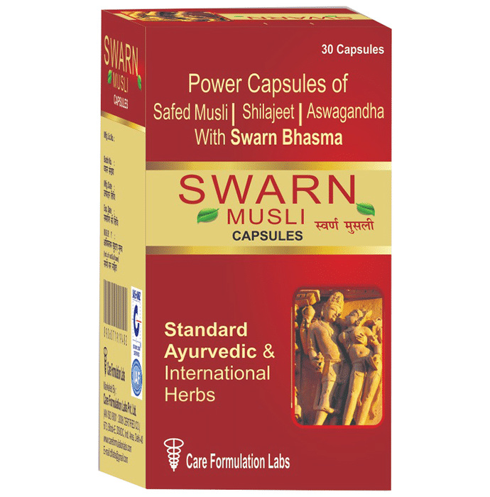 Care Swarn Musli Capsule Care Swarn Musli Capsule is a valuable capsule that can help against sexual problems and reinvigorate the body. Its blend of Ayurvedic ingredients can aid in slowing down body tissue wear and tear. Additionally, it can be useful in increasing vigour, stamina, libido, and sperm count and quality. Besides this, the product might also revitalise and make one feel younger and confident.