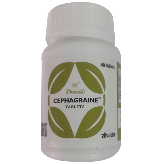 Charak Cephagraine Tablet provides effective relief of nasal congestion and promotes easy breathing in sinusitis. In migraine, Cephagraine provides an analgesic and anti-inflammatory action and relieves associated headache and pain. In sinusitis, Cephagraine reduces inflammation, liquefies mucus and relieves congestion. Cephagraine reduces the frequency, severity and duration of migraine by anti-inflammatory and analgesic property. Cephagraine also relieves migraine-associated sensory aura such as headache, nausea, vomiting and tinnitus. | Key Ingredients: Piper longum Calotropis gigantea Gypsum Datura metel | Key Benefits: Promotes decongestion of the nasal mucosa and thereby reduces nasal discharge Exhibits analgesic and anti-inflammatory action thereby relieves associated headache and pain Relieves nausea and reduces anxiety associated with migraine Reduces the frequency and duration of migraine attacks Prevents decongestion and blockage of nasal cavity | Directions For Use: Use as directed by the physician. | Safety Information: Read the label carefully before use Store in a cool dry place away from direct sunlight Keep out of reach of the children