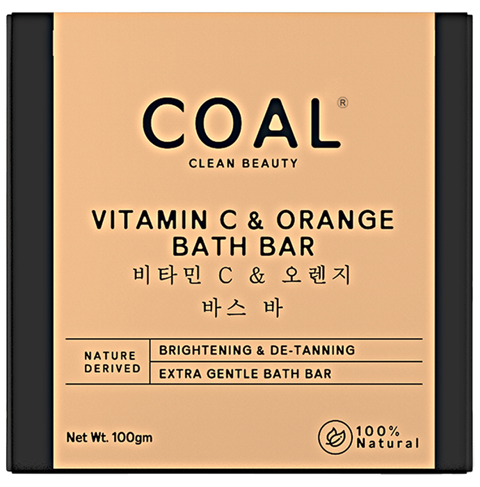 Coal Clean Beauty Bath Bar Vitamin C and Orange is a cold-pressed soap that is rich in antioxidants which may aid in reducing blemishes and dullness. Vitamin C can help brighten and nourish the skin and help in cell renewal. The bath bar may help fight free radicals. Orange oil can help tighten the pores, clear, brighten, and rejuvenate the skin to keep it healthy and glowing. Lemon oil may clear and brighten the skin tone. Coconut oil can moisturise and repair damaged skin. Olive oil may enhance skin cell turnover. Both men and women of all skin types can use this bath bar. It is free from toxins, parabens, and harmful chemicals. | Key Ingredients: Coconut oil Stearic acid Glycerin Castor oil Olive oil Wheat germ oil Mahua oil Butylated Vitamin C Japanese orange essential oil Lemon essential oil | Key Benefits: This bath bar contains antioxidants which may make the skin glow and reduce blemishes and dullness Vitamin C can moisturise and make the skin radiant and alleviate skin dryness by providing and retaining moisture in the skin Orange oil may tighten the pores, clear the skin, and maintain the health, appearance, and texture of the skin by promoting clarity, radiance, and smoothness Orange oil has an astringent effect on the skin that may help tighten the pores and regulate sebum levels Lemon oil has anti-inflammatory and antimicrobial properties, which can help brighten the skin tone and remove harmful bacteria trapped in the pores, which causes breakouts Coconut oil gets quickly absorbed into the skin and may help moisturise and repair dry and damaged skin Coconut oil can improve skin texture and health and add shine to the skin Olive oil may protect the skin from harmful free radicals, enhance skin cell turnover, and maintain skin elasticity | Directions For Use: Work the soap into a light lather Start from wet neck and shoulders and work your way down the length of your body Rinse off with water to ensure you are not drying your skin with scaly soap remnants Use daily and follow with a cream | Safety Information: For external use only Store in a cool and dry place Keep away from children Discontinue use immediately in case of skin irritation