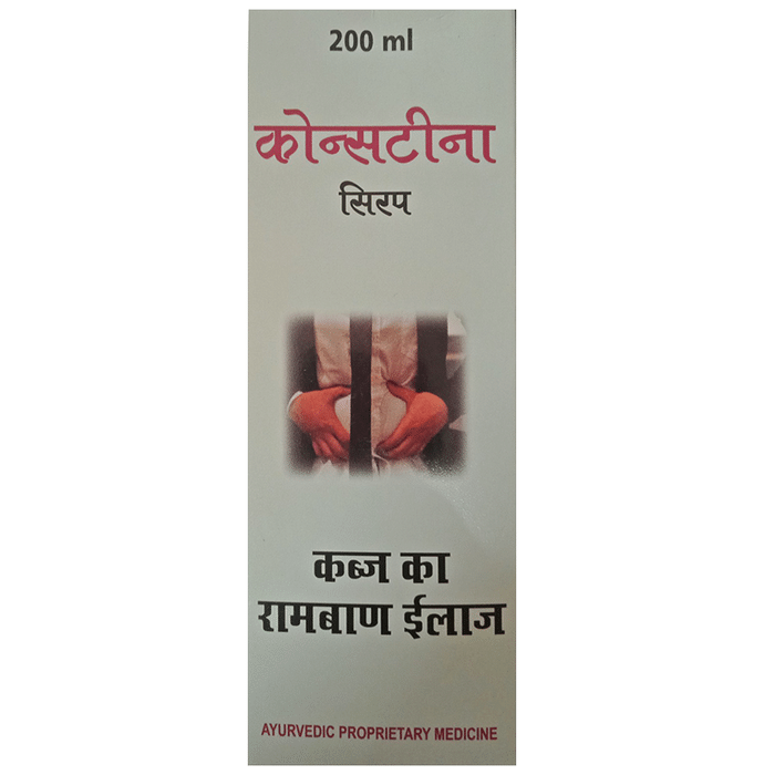 Constina Syrup is a herbal syrup that relieves constipation. It softens the stool and enhances intestinal motility. The product is recommended for acute and chronic constipation. | Key Ingredients: Isabgol Anjeer Sanay Harad Baheda Bael Nisoth Amaltas Erandmool Amla Gulab Saunf | Key Benefits: It relieves chronic and acute constipation It helps with indigestion It regulates irregular bowel It is useful for acidity and gastritis | Directions For Use: Use as directed. | Safety Information: Read the label carefully before use Store in a cool and dry place away from direct sunlight Keep out of reach of the children