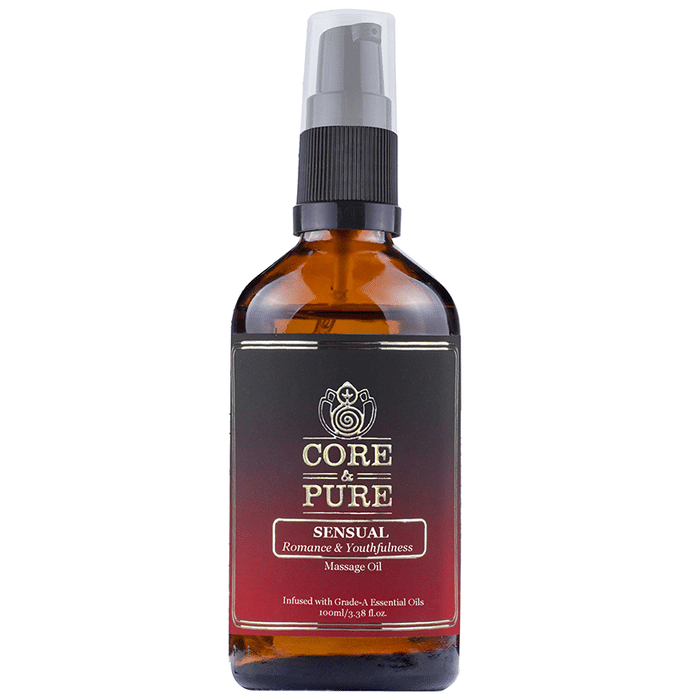 Core & Pure Sensual Massage Oil is made with natural ingredients and promotes a feeling of romance and youthfulness. | Key Ingredients: Vitis vinifera Sesamum indicum Argania Spinosa Santalum album Jasminum grandiflorum Salvia sclarea Soy Extracts Lavandula angustifolia | Key Benefits: It promotes the feeling of romance and youthfulness It makes energized and aromatized It relieves from mental and physical tensions It promotes healthy and supple skin | Directions For Use: Massage liberally onto the desired area or whole body as required. | Safety Information: Read the label carefully before use Store in a cool and dry place away from direct sunlight Keep out of reach of the children For external use only Avoid contact with eyes. If contact occurs, flush your eyes with cool water Discontinue if skin irritation occurs