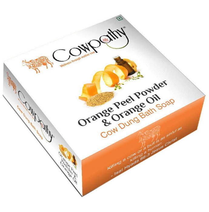 Cowpathy Orange Peel Powder and Orange Oil Cow Dung Bath Soap Cowpathy Cow Dung Bath Soap heals the skin ailments like eczema to gangrene including wounds and imparts its antiseptic propeties during bath and helps detoxify the skin.