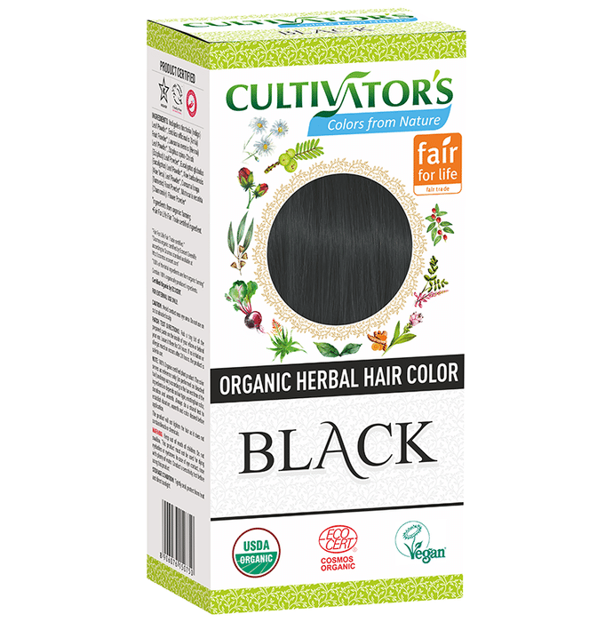 Cultivator's Organic Herbal Hair Color Black Cultivator's Organic Herbal Hair Black is a premium-quality product by a certified organic company that is famous worldwide for its Organic Herbal Hair Colours. Organic herbal hair colours are made from organic herbs and thus are much safer. It does not cause any hair damage and is free from any other chemicals. The natural herbs present in this organic herbal hair dye makes your hair softer, shinier and stronger.