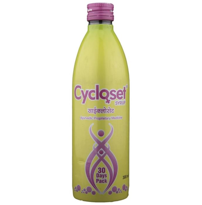 Cycloset Syrup Mixed fruit flavour Cycloset Syrup is an ayurvedic syrup containing Ashooka, Lodhra, Dhatkipushpa, Amla,Vibheetaki, Hareetaki,Sunthi,Amrasthi,Mustaka,Chandan, SafedJeera,Daruharidra, Vasaka, Pippali, Neel Kamal, Shahad Key benefits/Uses of Cycloset Syrup- - Ayurvedic preparation meant for the overall growth of the body - Provides nutrition to the body Direction for Use /Dosage- - One Teaspoonful of Cycloset Syrup twice a day after meals or as directed by the physician. Indications: - Nutritive Syrup Safety information: - Read the label carefully before use - Do not exceed the recommended dose - Keep out of the reach and sight of children