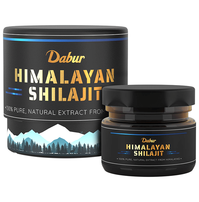 Dabur Himalayan Shilajit It is a dietary supplement formulated with shilajit that helps to boost immunity and reduces stress and anxiety. Shilajit is a health rejuvenator that detoxifies the body and mind. It may help in increasing strength and stamina. It also has antioxidant and anti-microbial properties that may boost immunity and testosterone levels. | Key Ingredients: Shilajit | Key Benefits: It helps to boost immunity and reduces stress and anxiety It is enriched with fulvic acid, which has potent antioxidant and anti-inflammatory properties Shilajit is a health rejuvenator that detoxifies the body and mind It improves the cognitive functioning of the brain and enhances memory capacity, focus and concentration It is a rich source of 80+ trace minerals that can help boost immunity Its Rasayana properties support healthy ageing, fight fatigue and improve immunity It promotes mental wellness and relieves stress and anxiety due to its medhya properties It has balya properties, which help strengthen bones and muscles and enhance stamina and vitality | Directions for Use: Take 250-500 mg of shilajit in lukewarm water/milk or as directed by your physician | Safety Information: Read the product label carefully before use Store in a cool and dry place away from direct sunlight Keep out of reach of children Consult a doctor before taking any supplement Do not exceed the recommended dosage Pregnant or nursing mothers, children, and people with medical conditions must consult a physician before taking this supplement