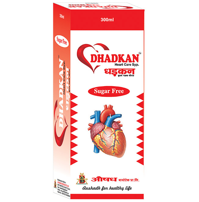 Dhadkan Syrup Sugar Free Dhadkan Syrup Sugar-Free is a sugar-free syrup with a blend of potent Ayurvedic herbs that helps enhance heart function. It can help regulate blood pressure levels.