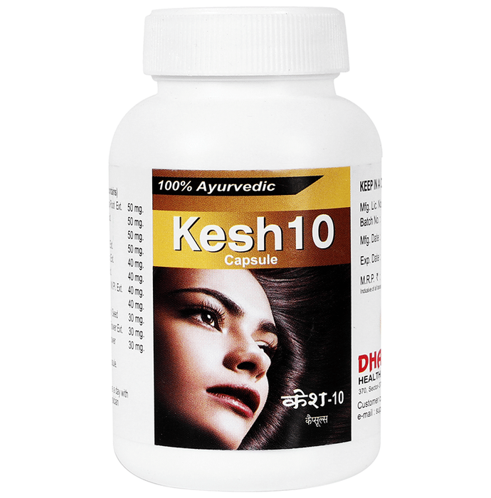 Dharmani Kesh 10 Capsule Dharmani Kesh 10 Capsule Kesh-10 keeps hair soft, supple, and nourished, giving ample moisturisation and nourishment to the hair. Daily use might help protect against the harsh effects of the sun, dust, and pollution. It gives shine and smoothness to hair.