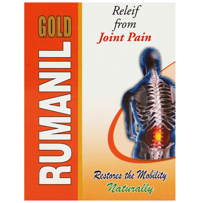 Dharmani Rumani Gold Capsule It is a carefully crafted formula with the goodness of nature and is a unique combination of herbs. It helps increase calcium levels in the body and strengthen bones and joints. It helps eliminate joint pain and stiffness and improves joint flexibility. | Key Ingredients: Swarna bhasma Hartal bhasma Kesar flower Karpur extract Ras sindhur | Key Benefits: Helps in providing relief to chronic pain due to musculoskeletal disorders like arthritis, gout and low back pain It provides the optimal amount of calcium required for fragile joints and other benefits of natural herbs to boost the strength of bone and cartilage If taken regularly, it may help prevent osteoporosis and common fractures of the joints Helps to promote joint and movement flexibility by restoring mobility and reducing pain in joints | Directions For Use: 1-2 capsules twice or thrice a day with water or milk or as directed by the physician. | Safety Information: Read the label carefully before use Store in a cool and dry place away from direct sunlight Keep out of reach of children