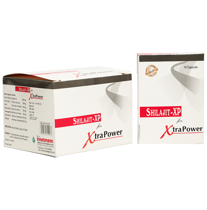 Dharmani Shilajit-XP Capsule Dharmani Shilajit-XP Capsule It provides the goodness of shilajit, which has been used as a natural remedy for enhancing performance, building immunity and promoting weight management. The product can help boost stamina, fuel energy and improves immunity.
