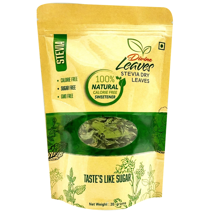 Divine Leaves Stevia Dry Leaves Divine Leaves Stevia Dry Leaves are perfect for use in your tea, coffee, desserts, or even chewing directly to satisfy your sweet tooth without adding to your calories. It is a 100% natural, zero-calorie sweetener ideal for diabetic patients, maintaining blood glucose levels, and weight management.