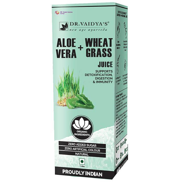 Dr. Vaidya's Aloe Vera + Wheatgrass Juice Vaidya's Aloe Vera + Wheatgrass Juice is a refreshing herbal beverage that provides the goodness of aloe vera and wheatgrass juice. Both the ingredients work together to support the detoxification of the body.