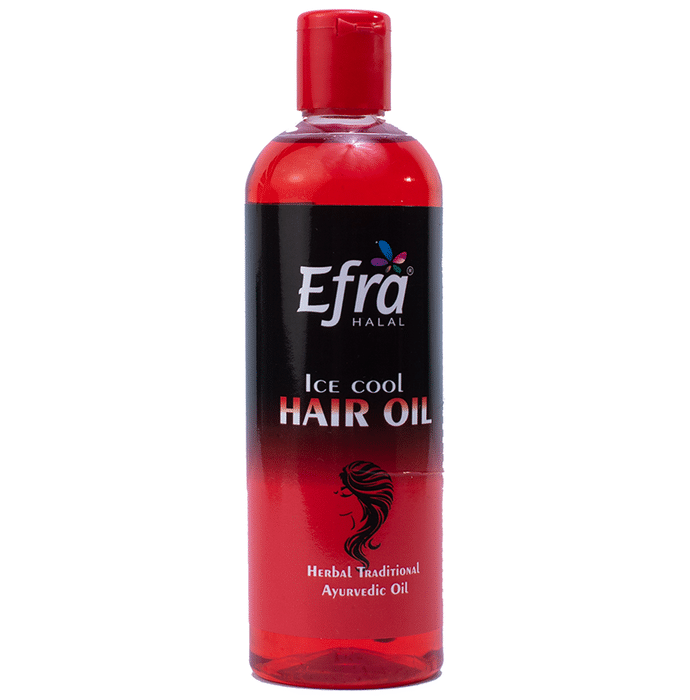 Efra Halal Hair Oil Ice Cool Efra Halal Hair Oil is designed to nourish and moisturize the hair. It helps to facilitate a cooling effect and prevents itching, inflammation and other skin infections. It is useful in the case of split ends, premature greying of hair and hair fall. In addition to this, it comes in three different variants namely, Natural Hair Fall Control, Ice Cool, and Anti Dandruff Non Greesy.