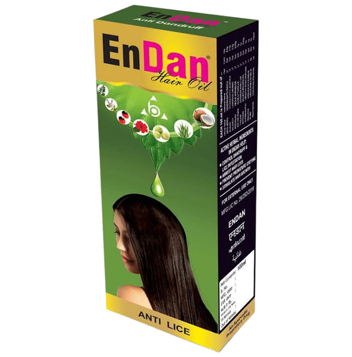 Endan Hair Oil Endan Hair Oil helps eliminate dandruff and lice infestation but strengthens hair. Dandruff is a major cause of heavy hair loss and lice infestation. Shampoo alone to fight dandruff and lice makes hair dull and lifeless. EnDan hair oil is packed with herbal extracts processed in a coconut oil base to fight dandruff and lice infestation.